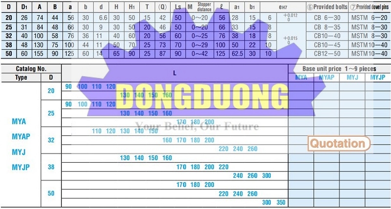 Sản phẩm bộ dẫn hướng myjp bao gồm 2 đế được đúc bằng thép hợp kim, kết hợp với 2 tấm trục trơn, có bạc gắn bi bên ngoài trục vật liệu đã qua xử lý nhiều , + lò xo tròn, và có sử dụng chốt định vị để cố định chính xác vị trí của sản phẩm trên khuôn.