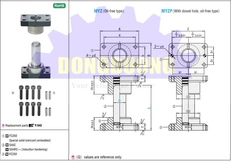 Bộ dẫn hướng trơn MYZP (Không có bi) được sử dụng nhiều trong các bộ khuôn dập để dẫn hướng của hai tấm khuôn, tạo độ chính xác khi dập sản phẩm.