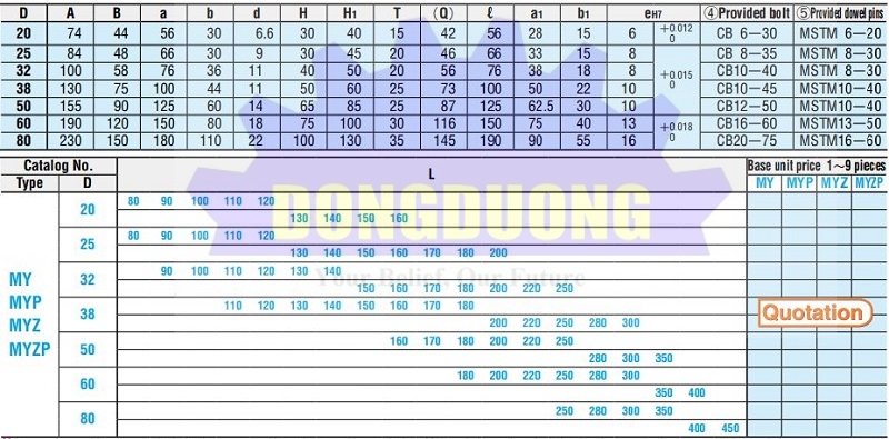 Bộ dẫn hướng trơn MYZP (Không có bi) được sử dụng nhiều trong các bộ khuôn dập để dẫn hướng của hai tấm khuôn, tạo độ chính xác khi dập sản phẩm.
