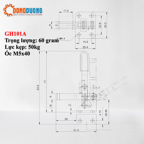 Cam kẹp inox GH-101A-SS là kẹp đứng sử dụng trong xưởng cơ khí gia công để gá kẹp jig đồ gá, làm giảm công đoạn gá đặt và tăng năng suất lao động.