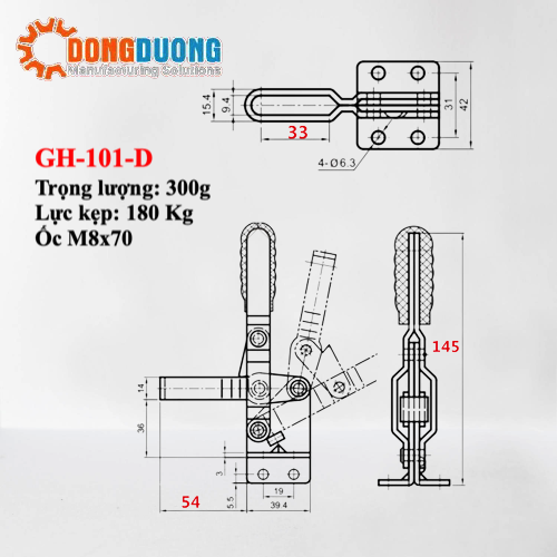 bản vẽ kỹ thuật của sản phẩm và catalogue cam kẹp GH101D: