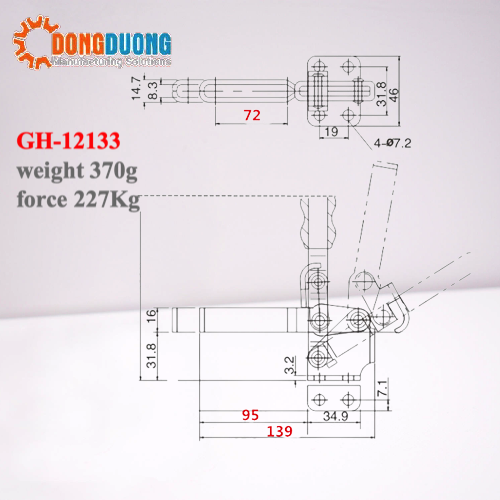 Bản vẽ kỹ thuật của sản phẩm và catalogue cam kẹp GH12133: