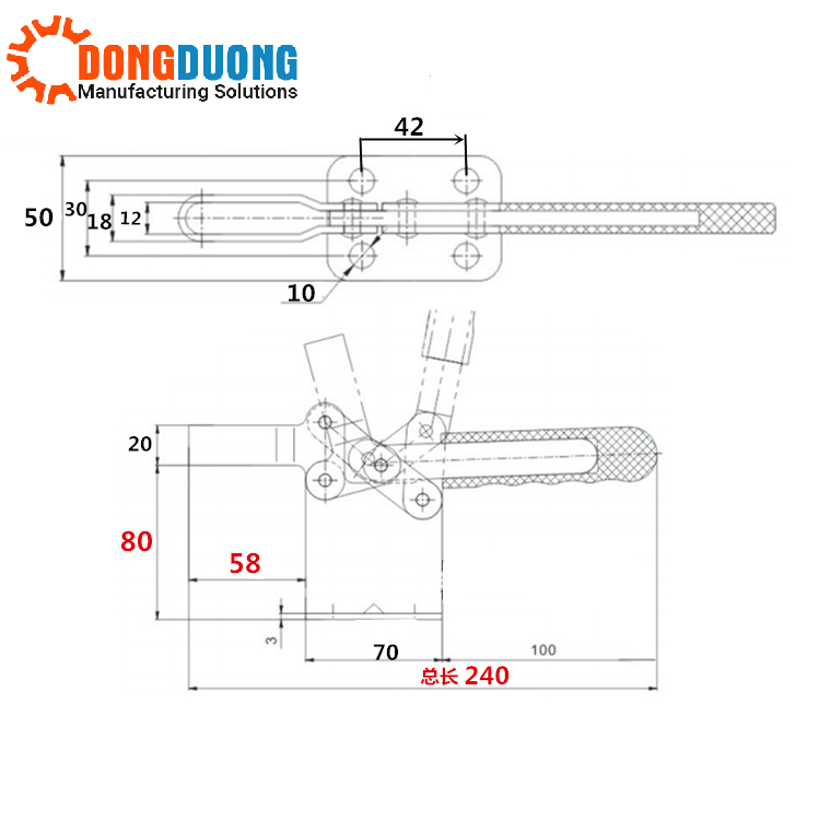 Bản vẽ kỹ thuật của sản phẩm và catalogue cam kẹp GH200WH: