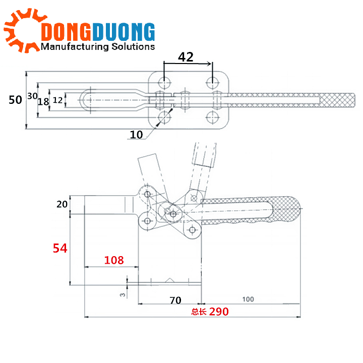 Cam kẹp GH200WL là kẹp định vị ngang được sử dụng trong công nghiệp để gá kẹp nhanh sản phẩm, kẹp kiểu ngang nghĩa là ở trạng thái giữ sản phẩm thì tay cầm của kẹp song song với bề mặt sản phẩm kẹp.