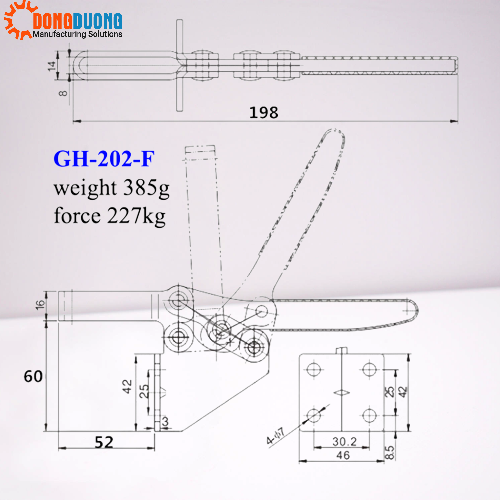 Bản vẽ kỹ thuật của sản phẩm và catalogue cam kẹp GH202F: