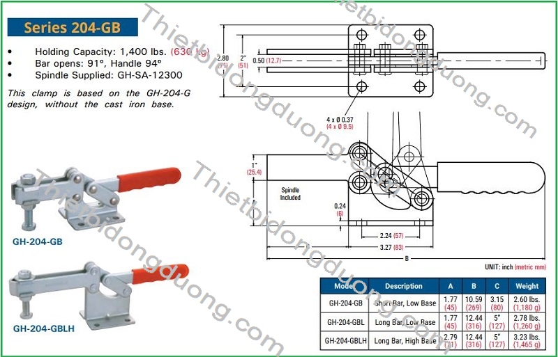 Bản vẽ kỹ thuật của sản phẩm và catalogue cam kẹp GH204GBL:
