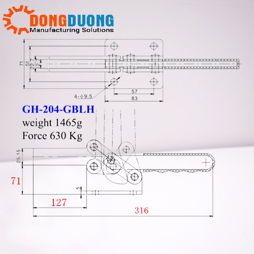 Bản vẽ kỹ thuật của sản phẩm và catalogue cam kẹp GH204GBLH: