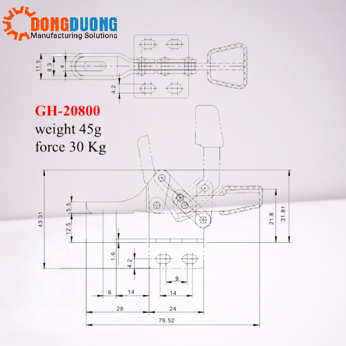 bản vẽ thuật của sản phẩm và catalogue cam kẹp GH20800: