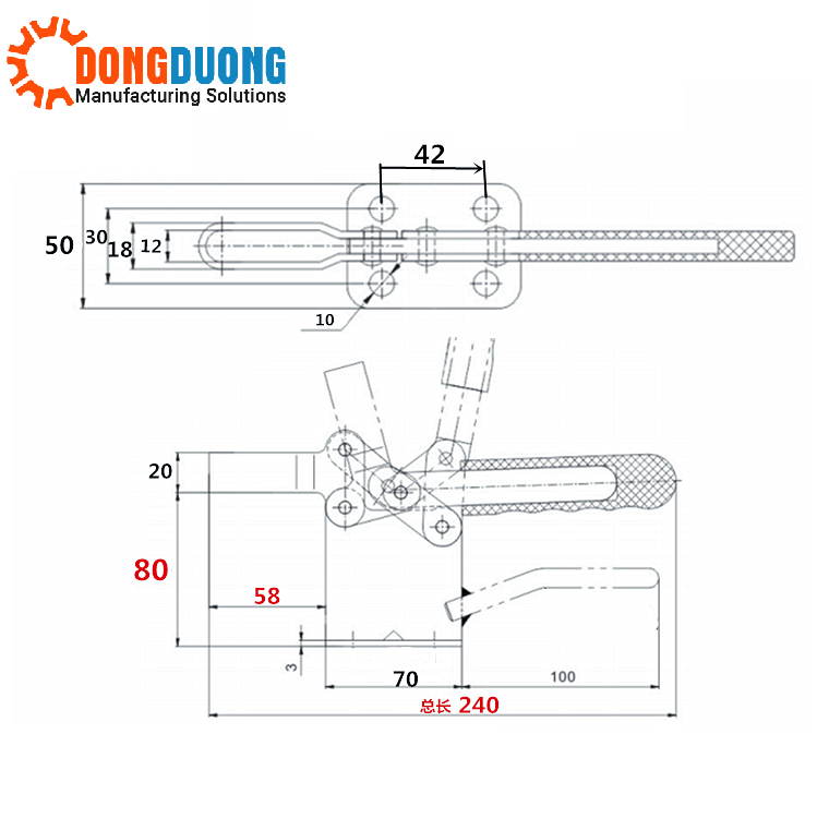 Bản vẽ kỹ thuật của sản phẩm và catalogue cam kẹp GH220WH: