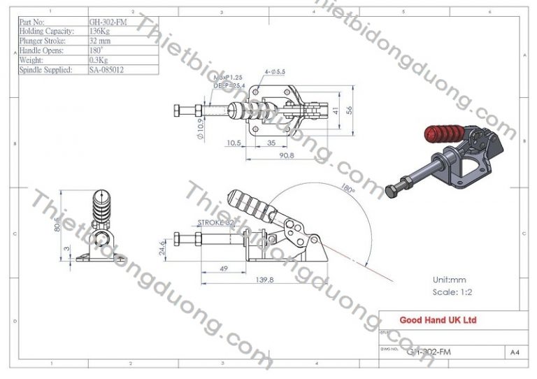 Bản vẽ kỹ thuật của sản phẩm và catalogue cam kẹp định vị GH302FM: