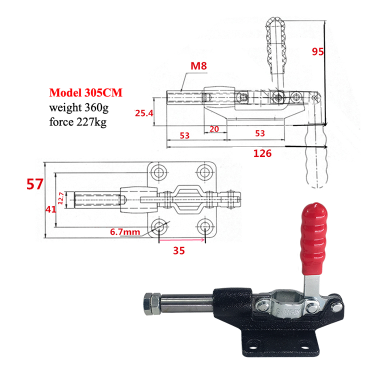 Cam kẹp định vị GH305C hay còn gọi là GH305CM là kẹp đẩy ngang được sử dụng trong công nghiệp để gá kẹp nhanh sản phẩm nhanh, kẹp kiểu đẩy ngang nghĩa là ở khi hoạt đông thì tay cầm của kẹp đẩy về phía giữ sản phẩm, thanh đẩy sẽ tịnh tiến lên, giữ chặt sản phẩm theo chiều tay đẩy.