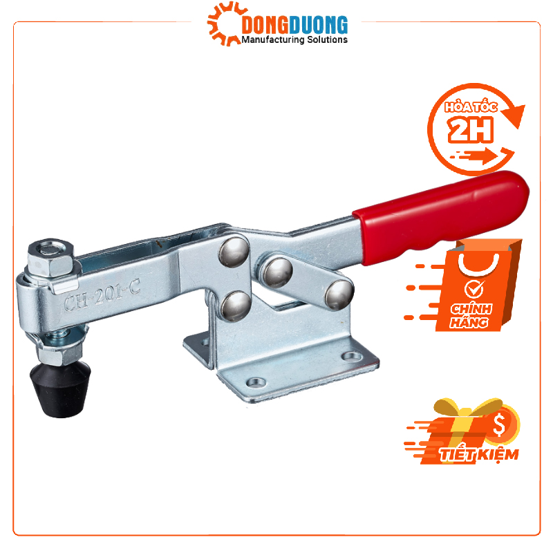 Kẹp định vị CH-201-C thương hiệu clamptek Đài Loan, là dạng kẹp nhanh với mỏ kẹp nằm ngang theo song song với chiều bắt kẹp, chuyển đổi lực kẹp nhờ tác động vào tay kẹp nhanh, Kẹp được sử dụng trong hệ thống máy móc jig đồ gá, xưởng sản xuất. Được nhập khẩu và phân phối bởi công ty Đông Dương