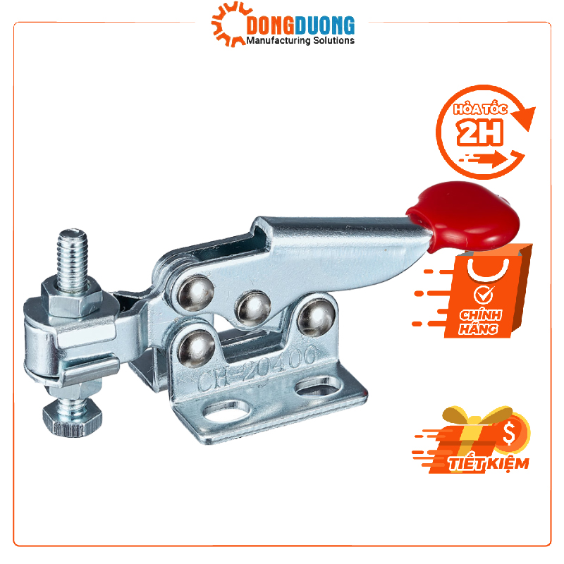 Kẹp định vị CH-20400 thương hiệu clamptek Đài Loan, là dạng kẹp nhanh với mỏ kẹp nằm ngang theo song song với chiều bắt kẹp, chuyển đổi lực kẹp nhờ tác động vào tay kẹp nhanh, Kẹp được sử dụng trong hệ thống máy móc jig đồ gá, xưởng sản xuất. Được nhập khẩu và phân phối bởi công ty Đông Dương