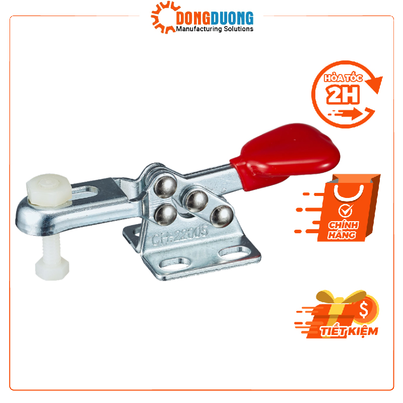 Kẹp định vị CH-22005 thương hiệu clamptek Đài Loan, là dạng kẹp nhanh với mỏ kẹp nằm ngang theo song song với chiều bắt kẹp, chuyển đổi lực kẹp nhờ tác động vào tay kẹp nhanh, Kẹp được sử dụng trong hệ thống máy móc jig đồ gá, xưởng sản xuất. Được nhập khẩu và phân phối bởi công ty Đông Dương