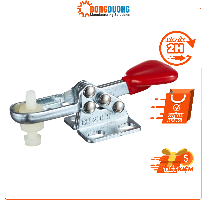 Kẹp định vị CH-22025 thương hiệu clamptek Đài Loan, là dạng kẹp nhanh với mỏ kẹp nằm ngang theo song song với chiều bắt kẹp, chuyển đổi lực kẹp nhờ tác động vào tay kẹp nhanh, Kẹp được sử dụng trong hệ thống máy móc jig đồ gá, xưởng sản xuất. Được nhập khẩu và phân phối bởi công ty Đông Dương