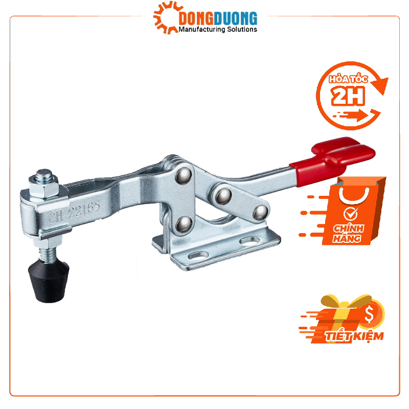 Kẹp định vị CH-22165 thương hiệu clamptek Đài Loan, là dạng kẹp nhanh với mỏ kẹp nằm ngang theo song song với chiều bắt kẹp, chuyển đổi lực kẹp nhờ tác động vào tay kẹp nhanh, Kẹp được sử dụng trong hệ thống máy móc jig đồ gá, xưởng sản xuất. Được nhập khẩu và phân phối bởi công ty Đông Dương