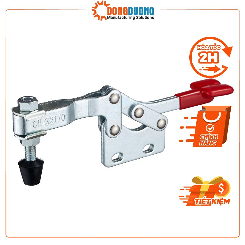 Kẹp định vị CH-22170 thương hiệu clamptek Đài Loan, là dạng kẹp nhanh với mỏ kẹp nằm ngang theo song song với chiều bắt kẹp, chuyển đổi lực kẹp nhờ tác động vào tay kẹp nhanh, Kẹp được sử dụng trong hệ thống máy móc jig đồ gá, xưởng sản xuất. Được nhập khẩu và phân phối bởi công ty Đông Dương