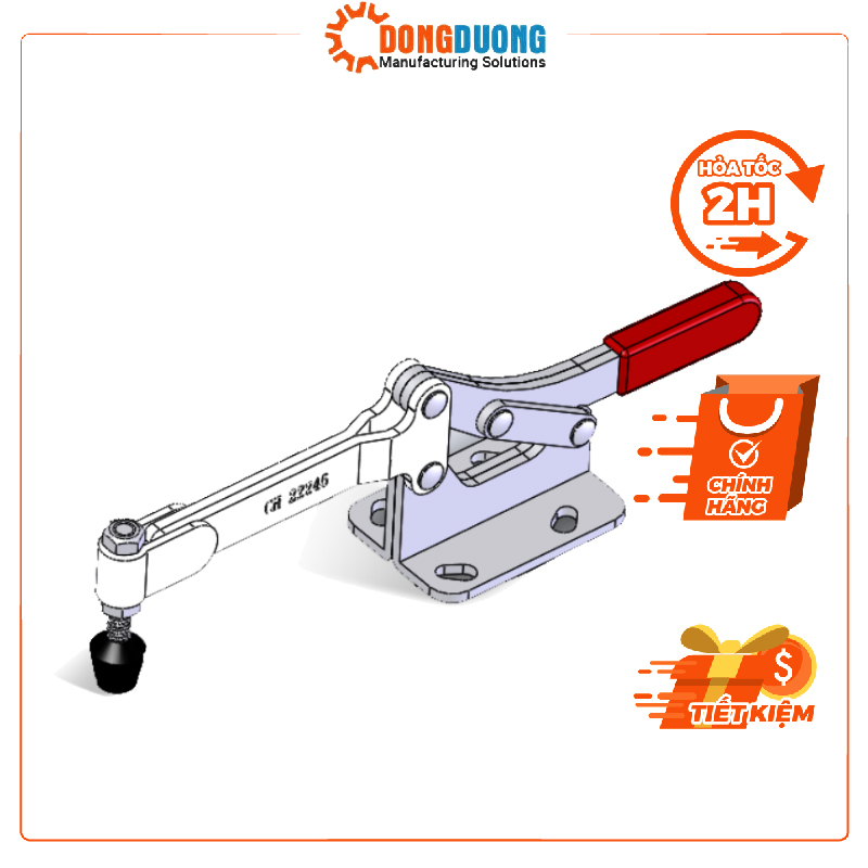 Kẹp định vị CH-22245 thương hiệu clamptek Đài Loan, là dạng kẹp nhanh với mỏ kẹp nằm ngang theo song song với chiều bắt kẹp, chuyển đổi lực kẹp nhờ tác động vào tay kẹp nhanh, Kẹp được sử dụng trong hệ thống máy móc jig đồ gá, xưởng sản xuất. Được nhập khẩu và phân phối bởi công ty Đông Dương