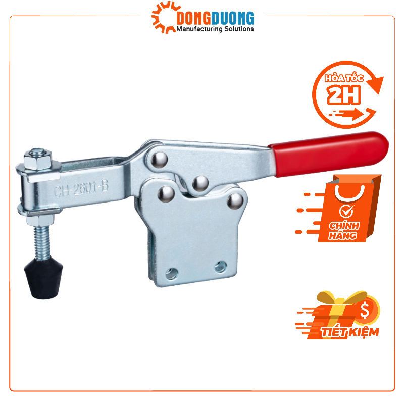 Kẹp định vị CH-2601 thương hiệu clamptek Đài Loan, là dạng kẹp nhanh với mỏ kẹp nằm ngang theo song song với chiều bắt kẹp, chuyển đổi lực kẹp nhờ tác động vào tay kẹp nhanh, Kẹp được sử dụng trong hệ thống máy móc jig đồ gá, xưởng sản xuất. Được nhập khẩu và phân phối bởi công ty Đông Dương