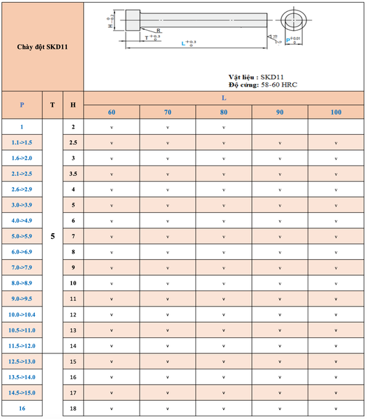 Chày đột lỗ SPC là linh kiện khuôn dập dùng để đột lỗ trong, vật liệu skd11 có độ cứng cao, cung cấp tại Hà Nội, là vật tư dùng trong các bộ khuôn đột dập, sản phẩm được thiết kế dạng chốt thẳng, độ cứng cao như thép gió, để dễ dàng đột dập lỗ trên tấm kim loại.
