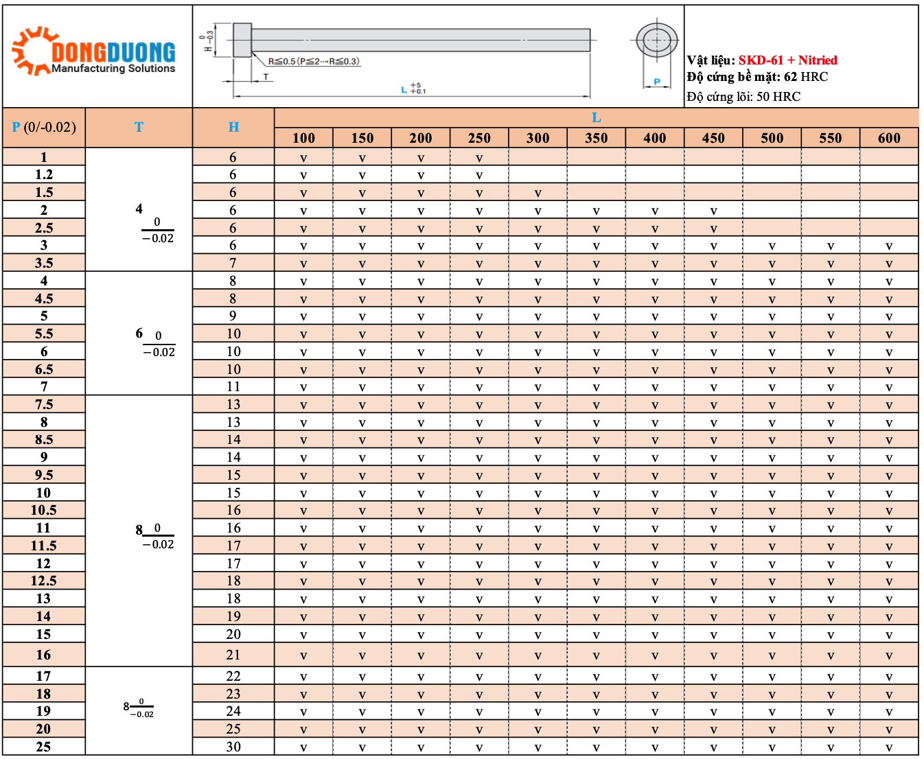 Bản vẽ kỹ thuật và catalogue của chốt đẩy khuôn: