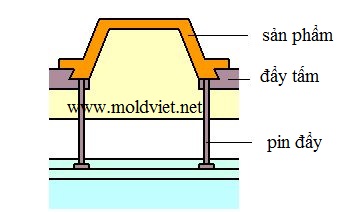 Phương pháp này dùng 2 bước để đẩy sản phẩm ra: thường kết hợp của tấm đẩy và pin đẩy.
