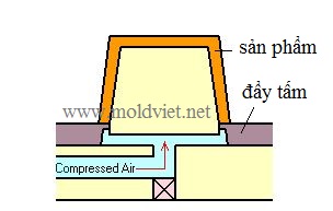 Đẩy bằng khí nén thường được sử dụng để hỗ trợ quá trình đẩy của các chi tiết có chiều sâu chi tiết có chiều sâu (dạng tròn) hoặc để hỗ trợ tấm đẩy đẩy sản phẩm ra khỏi khuôn dễ dàng