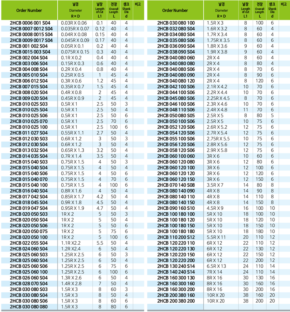 Thông số kỹ thuật của dao phay cầu ball endmill 2HCB: