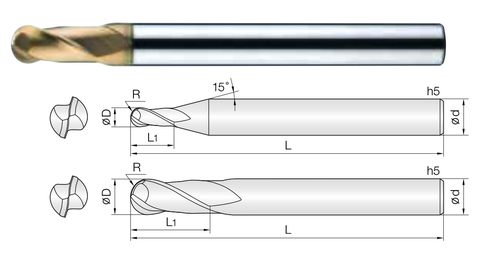Dao phay cầu 2HCB là dụng cụ cắt gọt chuyên dùng để gia công thép hợp kim cứng trước và sau nhiệt. dao ball endmill có độ chống ăn mòn tốt nhờ lớp phủ PVD, thường được sử dụng để gia công thép làm khuôn như skd61, nak80, hpm, skh51 ...