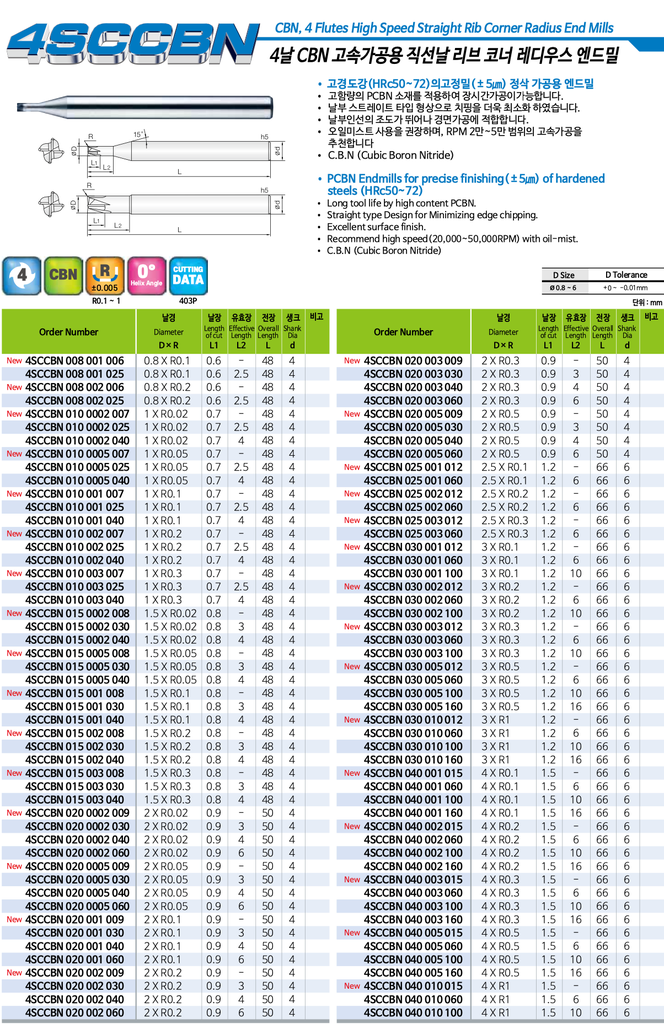 Thông số kỹ thuật của dao endmill 4SCCBN: