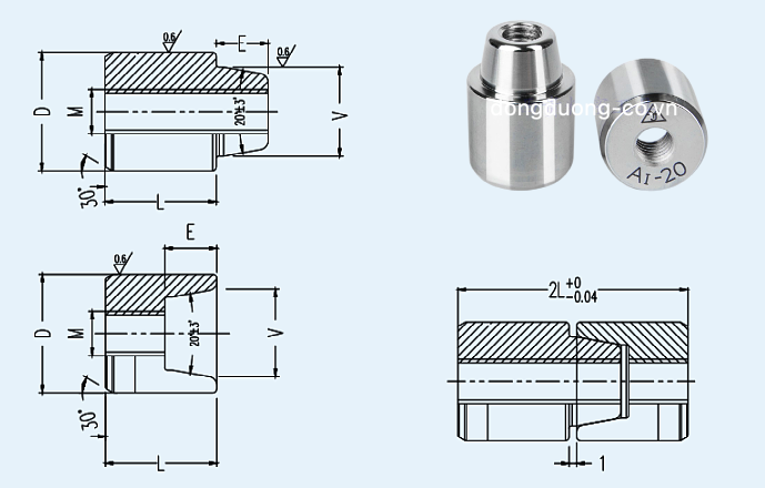 Bản vẽ của chốt định vị côn twa có ren: