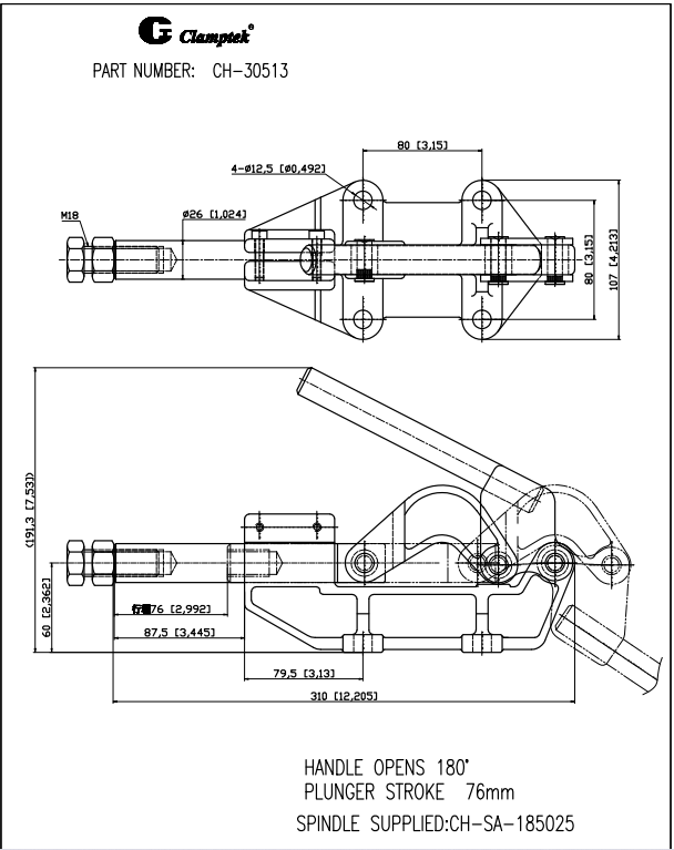 Kẹp định vị CH-30513 xuất xứ Đài Loan, là dạng kẹp nhanh với đầu kẹp di chuyển tịnh tiến dạng đẩy ngang, được sử dụng trong hệ thống máy móc tự động hóa, jig đồ gá, xưởng sản xuất, tiết kiệm nhân công và mang lại hiệu suất lao động cao.