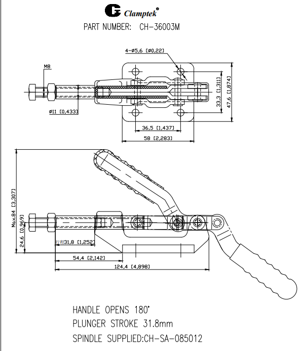 Kẹp định vị CH-36003M xuất xứ Đài Loan, là dạng kẹp nhanh với đầu kẹp di chuyển tịnh tiến dạng đẩy ngang, được sử dụng trong hệ thống máy móc tự động hóa, jig đồ gá, xưởng sản xuất, tiết kiệm nhân công và mang lại hiệu suất lao động cao.