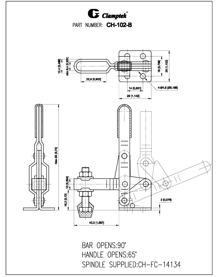 Kẹp định vị CH-102B xuất xứ Đài Loan, là dạng kẹp nhanh với mỏ kẹp thẳng đứng, được sử dụng trong hệ thống máy móc jig đồ gá, xưởng sản xuất. Được nhập khẩu và phân phối bởi công ty Đông Dương