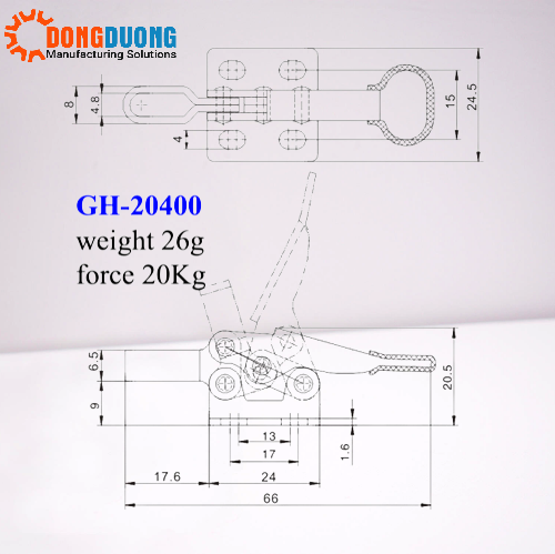 Bản vẽ kỹ thuật của sản phẩm và catalogue cam kẹp GH20400: