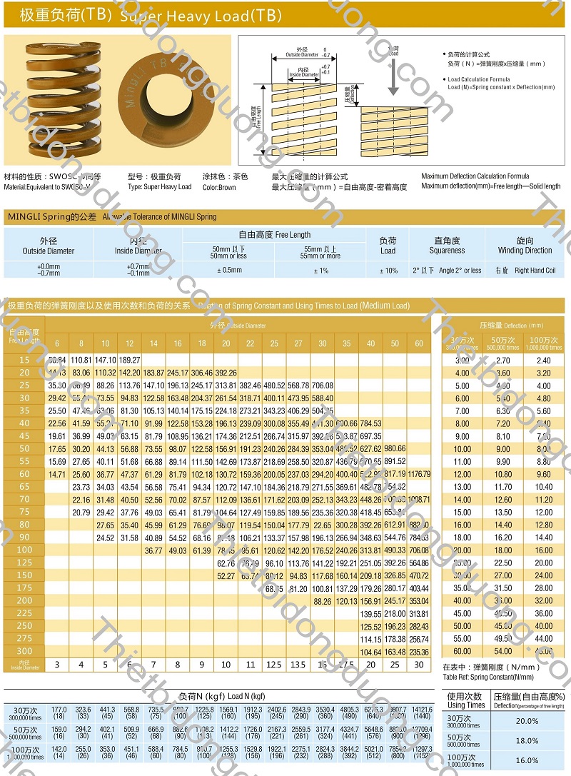 Lò xo nâu TB30 là Linh kiện khuôn mẫu được sử dụng trong công nghiệp , lắp ghép với chốt hồi trong khuôn ép nhựa hoặc sử dụng để đẩy trong khuôn dập, các thiết bị máy móc cơ khí.