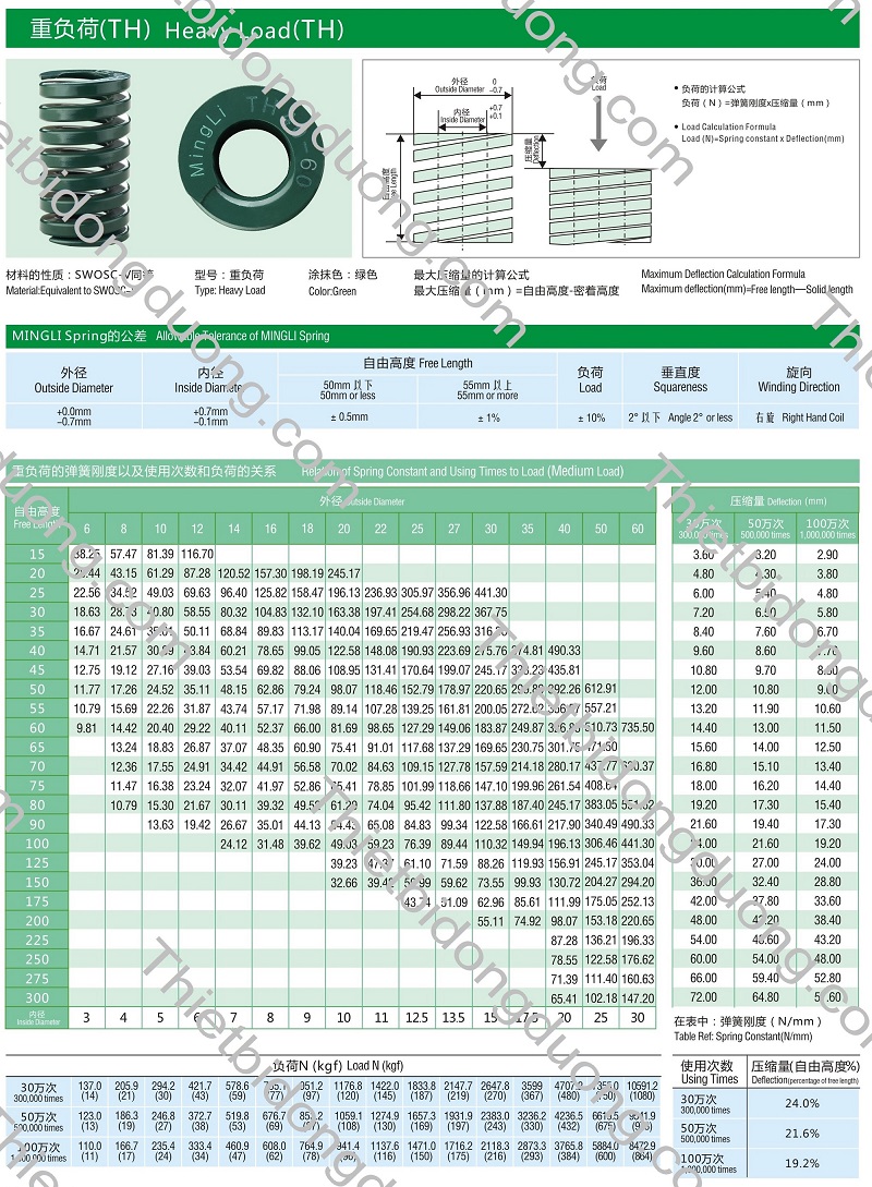Lò xo xanh lá cây TH40 là Linh kiện khuôn mẫu được sử dụng trong công nghiệp , lắp ghép với chốt hồi trong khuôn ép nhựa hoặc sử dụng để đẩy trong khuôn dập, các thiết bị máy móc cơ khí.