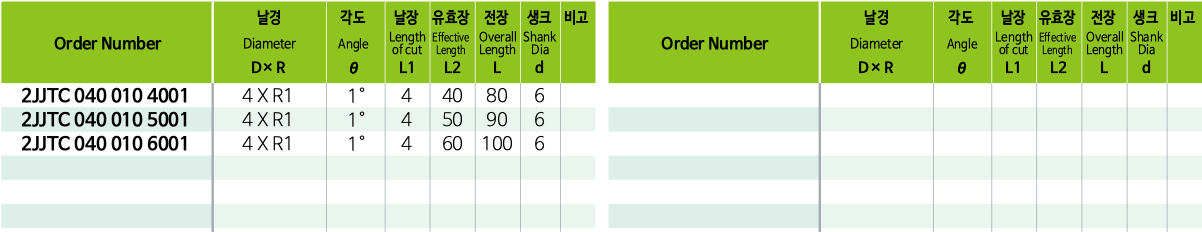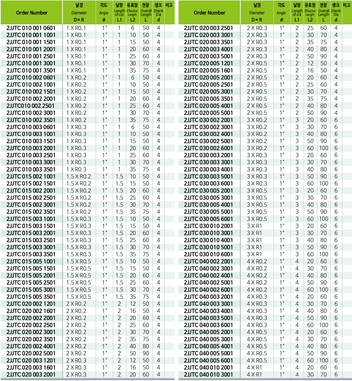 Thông số kỹ thuật mũi dao phay cầu 2JJTC:
