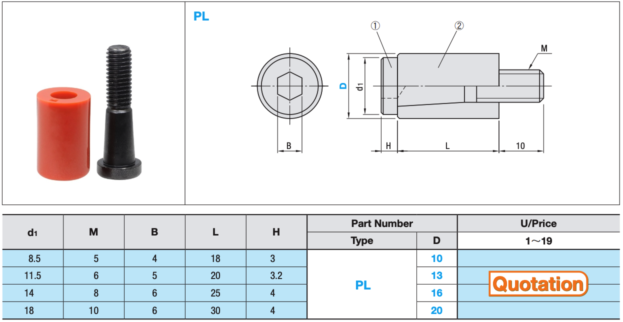 Thông số kỹ thuật của chốt giật khuôn màu cam PL