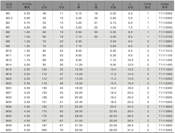 Thông số kỹ thuật mũi taro rãnh thẳng