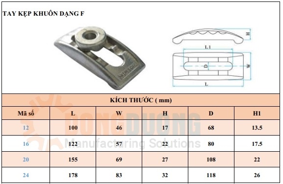 Tay kẹp dạng F là phụ kiện khuôn mẫu được sử dụng trong khi gá đặt khuôn lên bàn máy ép nhựa, dập, CNC ..