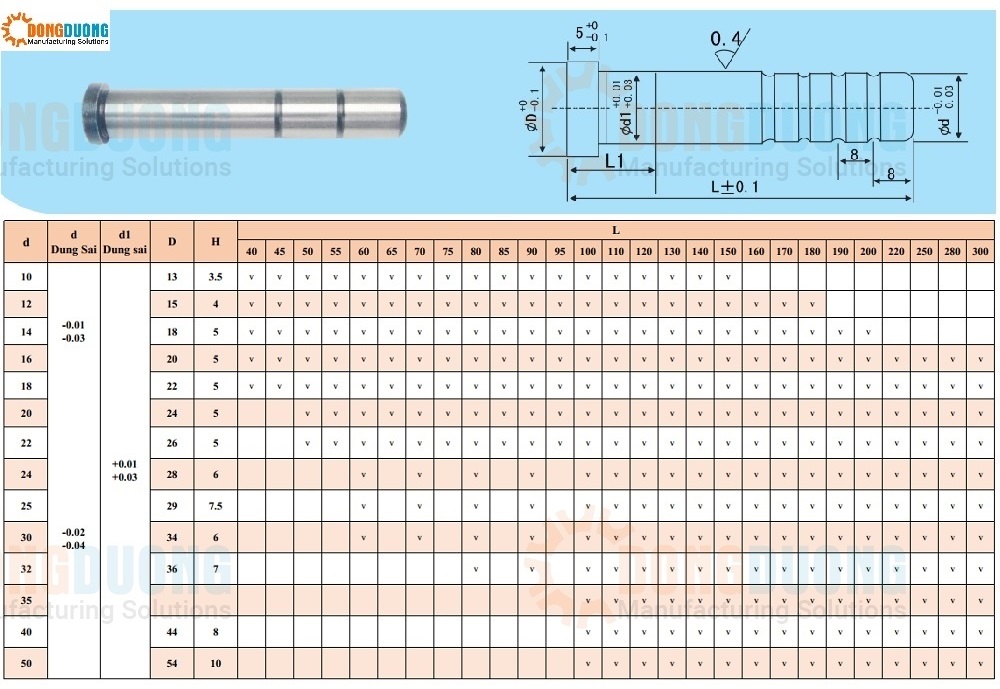 Trục dẫn hướng GP là linh kiện khuôn mẫu được sử dụng trong khuôn nhựa kết hợp với bạc để dẫn hướng cho khuôn.