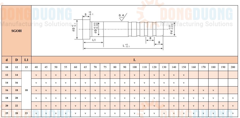 Trục dẫn hướng SGOH là linh kiện khuôn mẫu được sử dụng trong khuôn nhựa kết hợp với bạc để dẫn hướng cho khuôn.