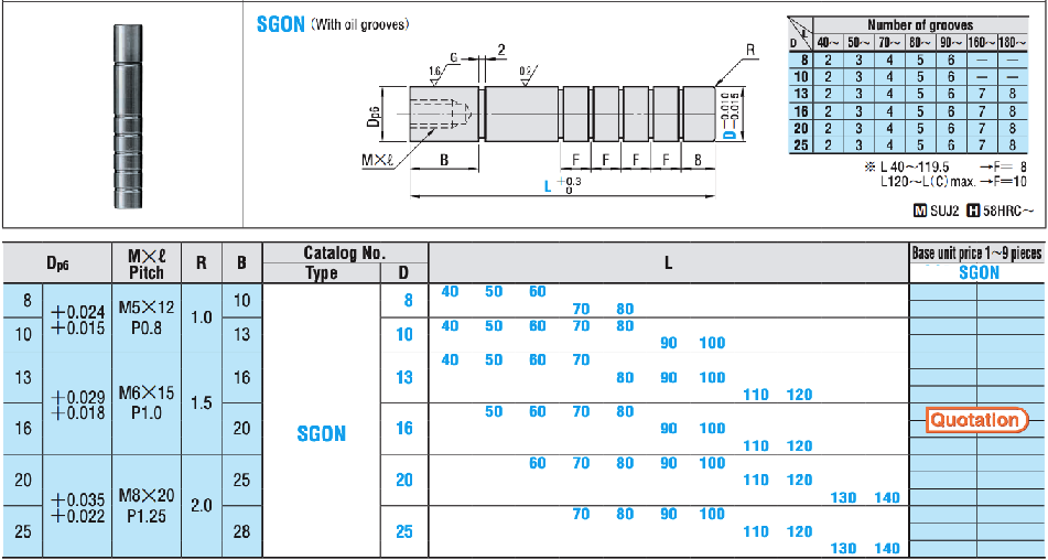 Trục dẫn hướng không có vai SGON là linh kiện lắp đặt trong khuôn mẫu, dùng để dẫn hướng tấm khuôn dập, hệ thống đột.